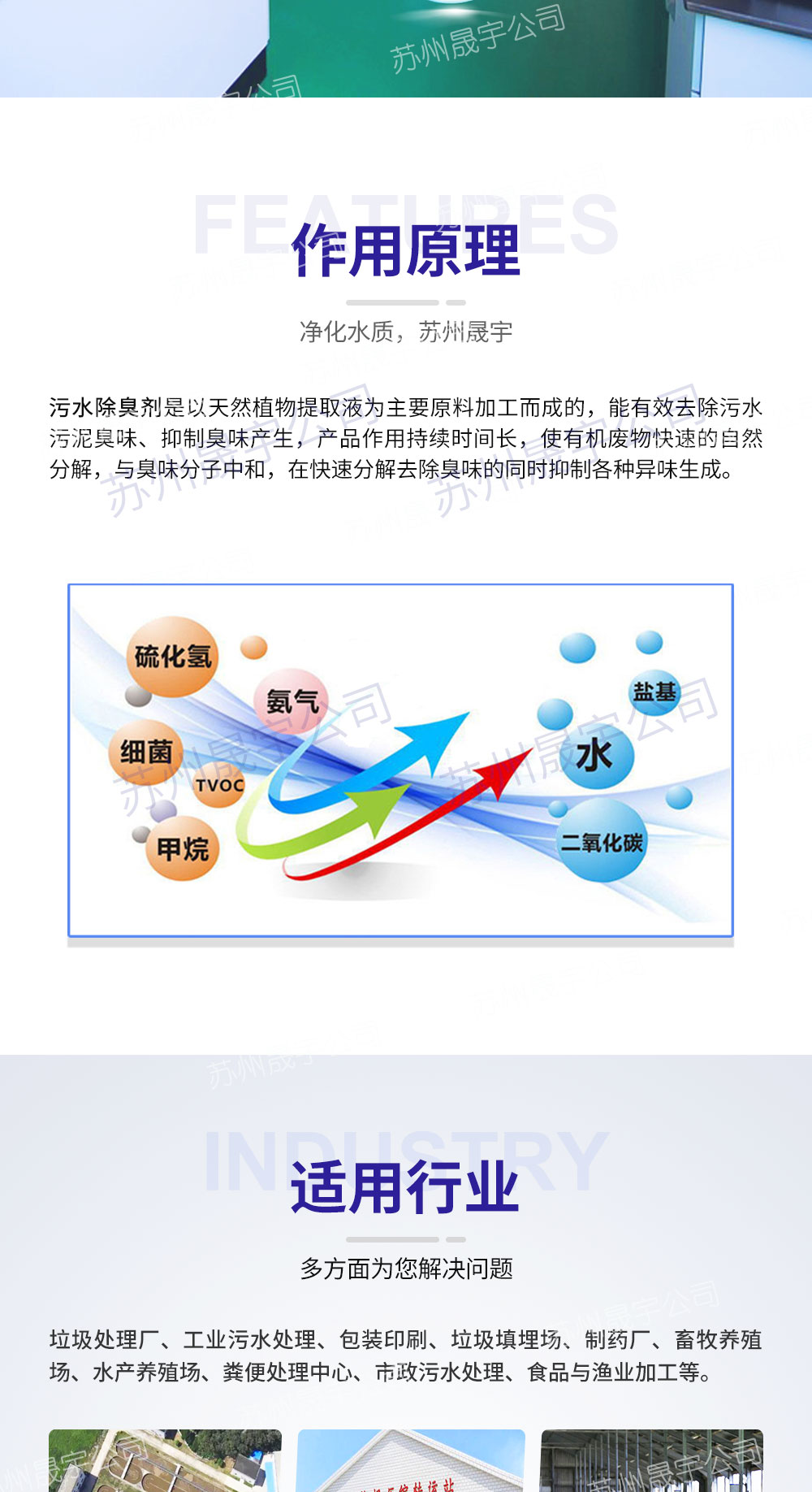 污水除臭剂是以天然植物提取液为主要原料加工而成的,能有效去除污水污泥臭味、抑制臭味产生,产品作用持续时间长,使有机废物快速的自然分解,与臭味分子中和,在快速分解去除臭味的同时抑制各种异味生成。