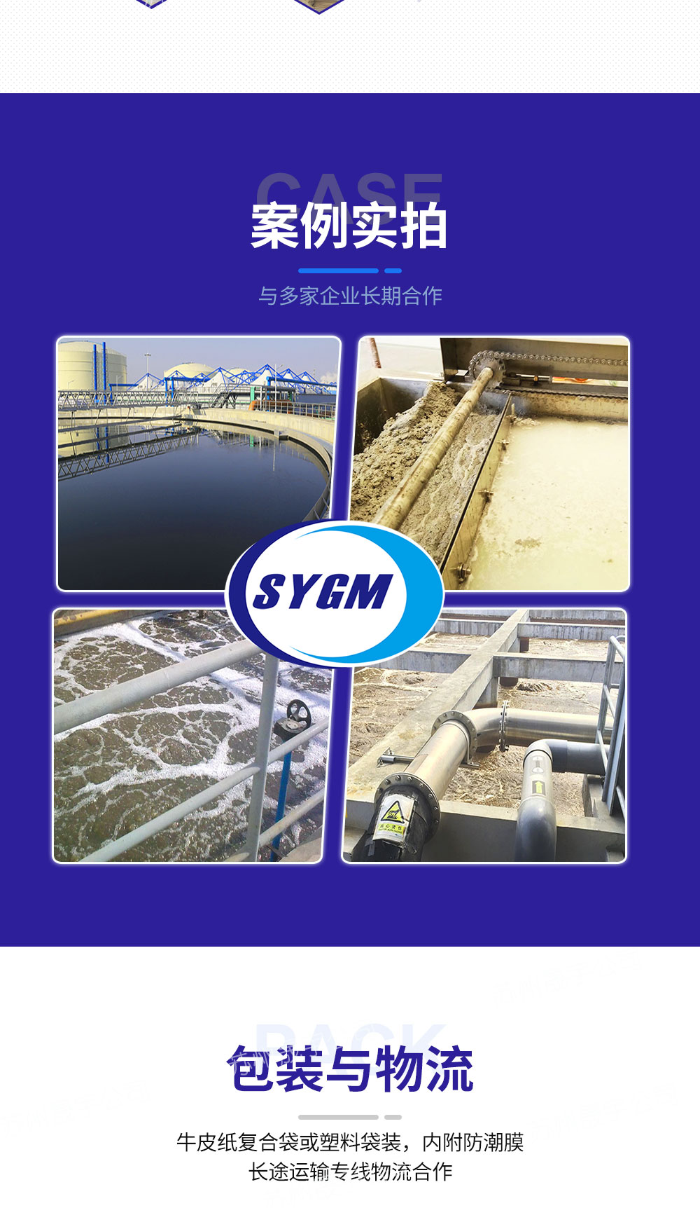 污水絮凝剂产品形态:白色颗粒粉状、乳液,使用范围:污水处理,分子量:600-2000,离子型:阴离子、阳离子、非离子,包装规格:25公斤,使用浓度:通常0.05%-0.20%,储存条件:阴凉干燥库房内。污水絮凝剂在水处理中通过电荷中和促进水中悬浮颗粒凝聚,在高分子链的吸附和架桥作用下形成较大的絮体实现分离、沉淀、上浮。